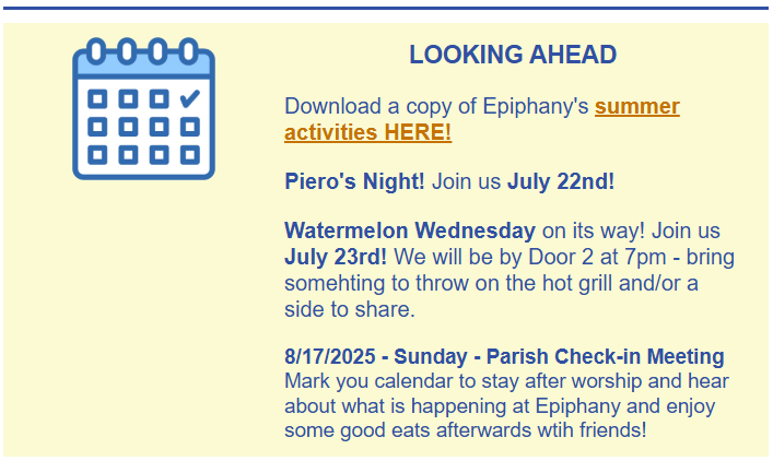In considering traditions at Epiphany, one is music. Music is one of the oldest traditions in all types of religious and cultural settings from the beginning of time. Music is emotionally stirring and powerful in its effect. In line with the Episcopal Church, we at Epiphany value music as a part of our Sunday worship at 10 a.m. We also often include it in special or seasonal worship services, like the evening contemplative worship or Easter service.