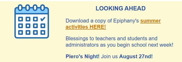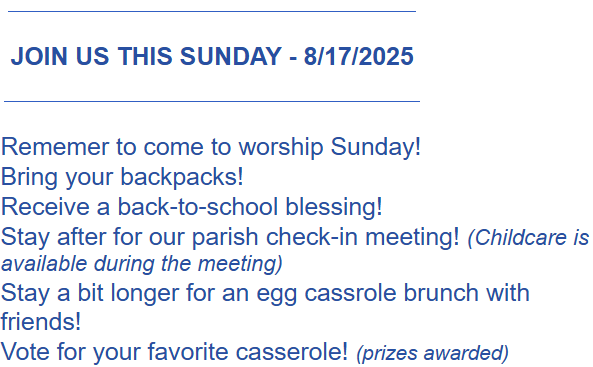 A Hump Day Message: Getting Back Into the Swing of Things! Join Us Sunday! August 13, 2025 by Epiphany Communications August 13, 2025 Worship, Blessings, Updates, & Casseroles, Oh My!